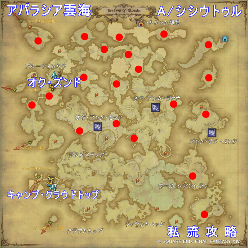 FF14 蒼天モブハント アジス・ラー S/レウクロッタ 出現位置